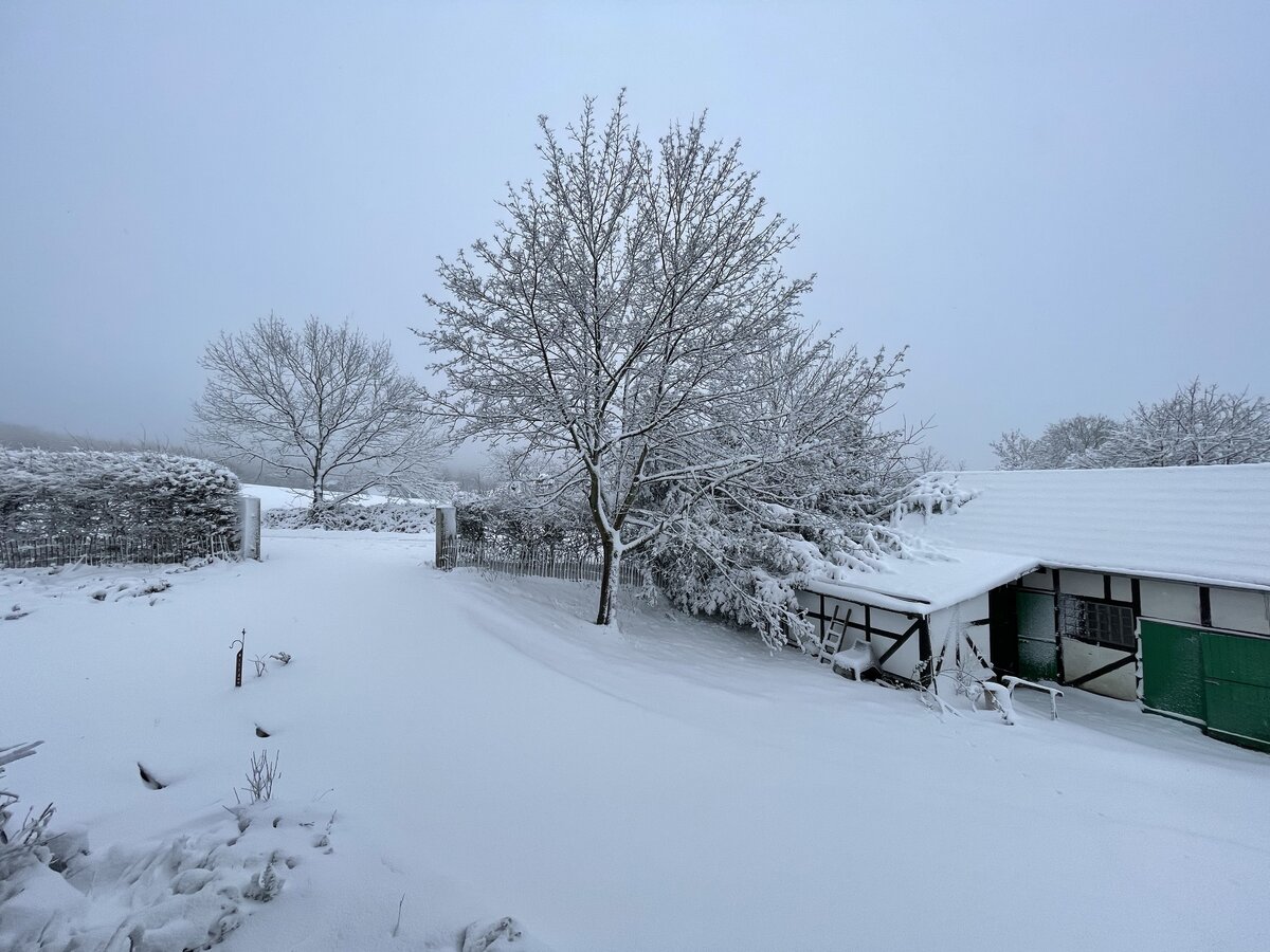 - Stallgebäude mit Heuboden und drei Pferdeboxen, alle über einen Innenraum erreichbar, zwei zusätzlich mit direktem Außenzugang