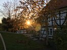 Die Immobilie liegt in ruhiger, idyllischer Lage mit unverbaubarem Blick in ein weitläufiges Landschaftsschutzgebiet. Die Umgebung ist geprägt von Wiesen, Bäumen und einem harmonischen, historisch gewachsenen Ortsbild.